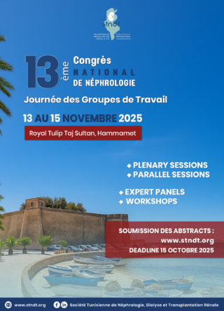 Annonce du 13ème Congrès National Tunisien de Néphrologie 2025  Nous avons le plaisir d’annoncer la tenue du